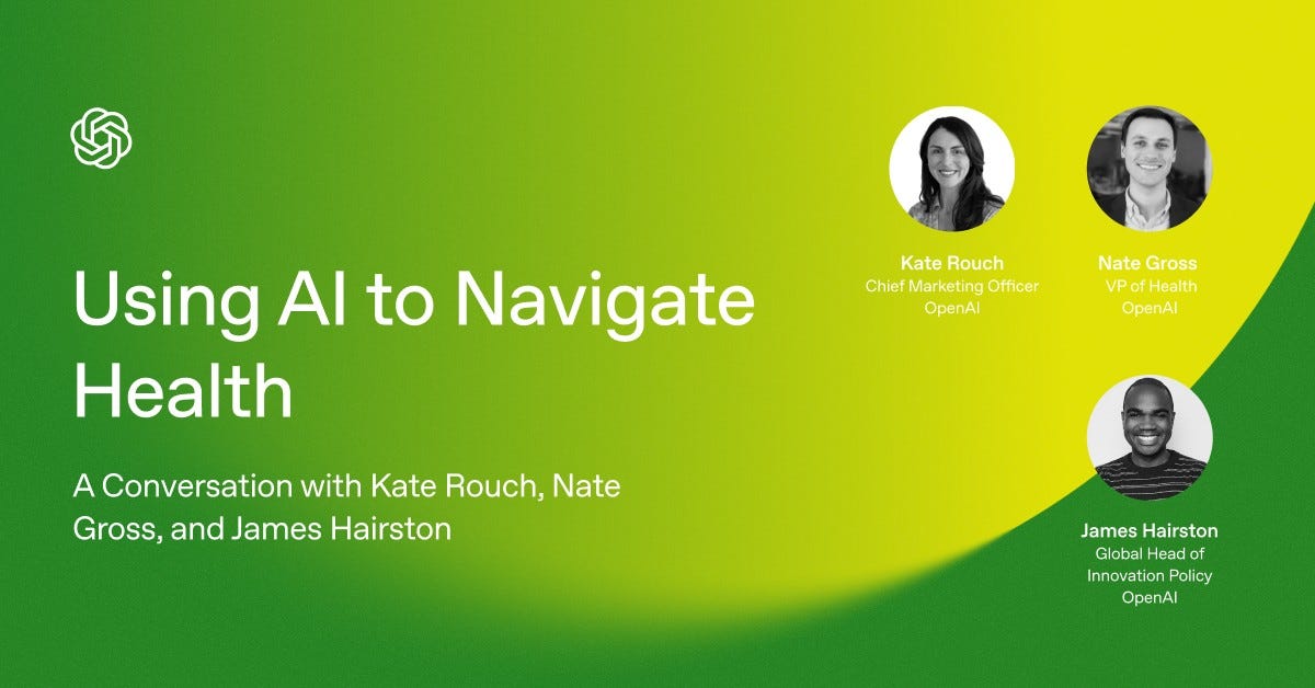 Furthering our data and stories about how millions are using ChatGPT to navigate questions about their healthcare, the OpenAI Forum this Thursday is hosting a talk on this timely topic. Register here to attend this discussion featuring OpenAI Chief Marketing Officer Kate Rouch; Nate Gross, who leads the healthcare initiative at OpenAI; and James Hairston, OpenAI’s global head of innovation policy.